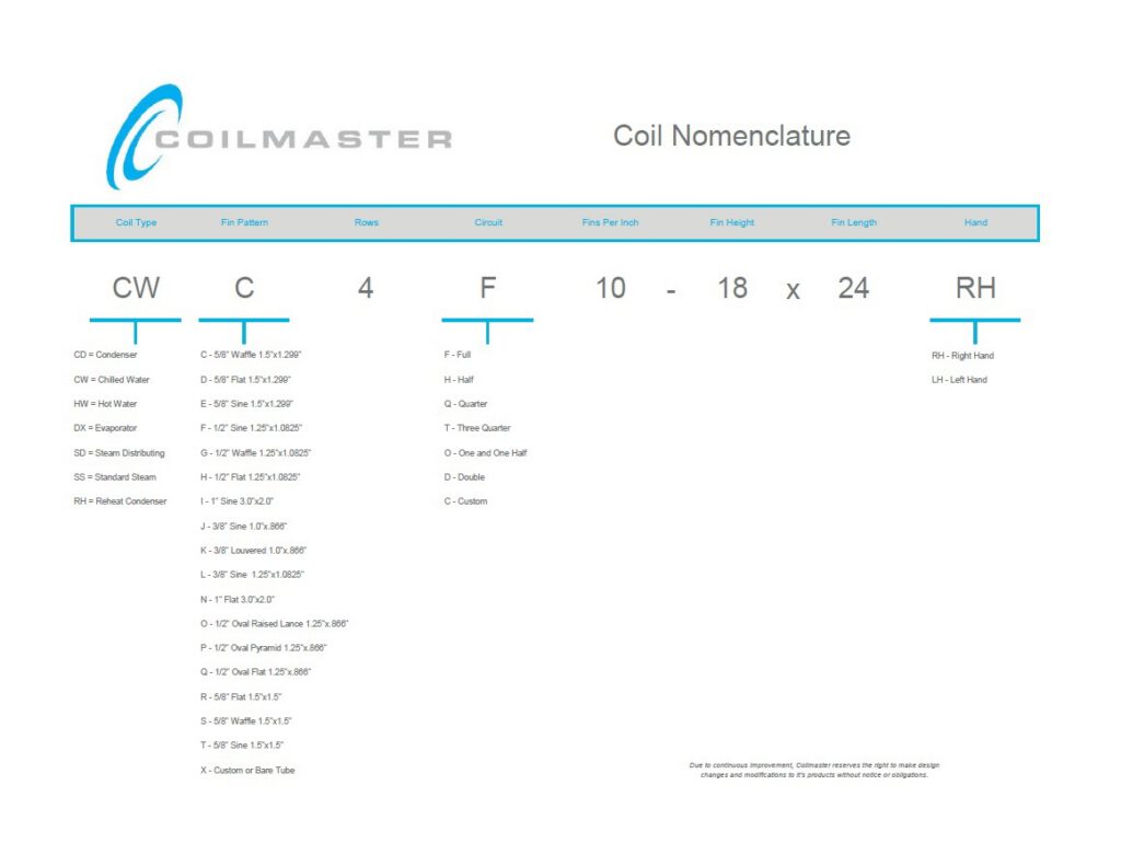 Download our nomenclature reference sheet for an explanation of our model number descriptions.